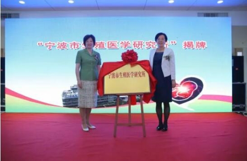 张松英、陈月芳共同为“宁波市生殖医学研究所”揭牌。