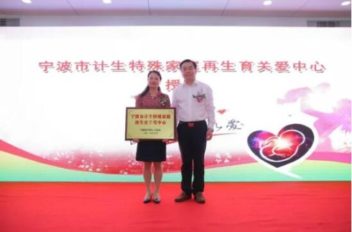 时孝喜授牌:宁波市计生特殊家庭再生育关爱中心。