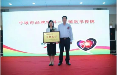 蒋志云授牌:宁波市医学品牌学科——生殖医学。